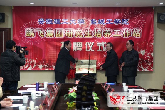 12月10日,由鵬飛集團聯合安徽理工大學、鹽城工學院創建的研究生培養工作站在江蘇鵬飛集團公司舉行揭牌儀式,江蘇鵬飛集團副總經理周延標介紹了與安徽理工大學、鹽城工學校產學研合作情況,鹽城工學院邵榮副校長、安徽理工大學王其東副校長對研究生培養工作站的成立提出新的工作要求,大公鎮政府、海安縣科技局領導做了重要講話,鹽城工學院邵榮副校長、王其東副校長、鵬飛集團副總經理周延標在三方合作協議上簽字,三方共同為鵬飛集團研究生工作站揭牌,會議結束后,大家參觀了江蘇鵬飛節能環保產業技術研究院和鵬飛集團全面建成投產后的北廠新區。