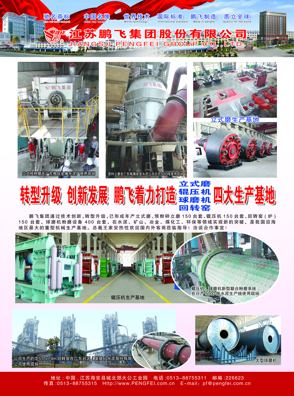 轉型升級 創新發展 鵬飛著力打造立式磨、輥壓機、球磨機、回轉窯四大生產基地