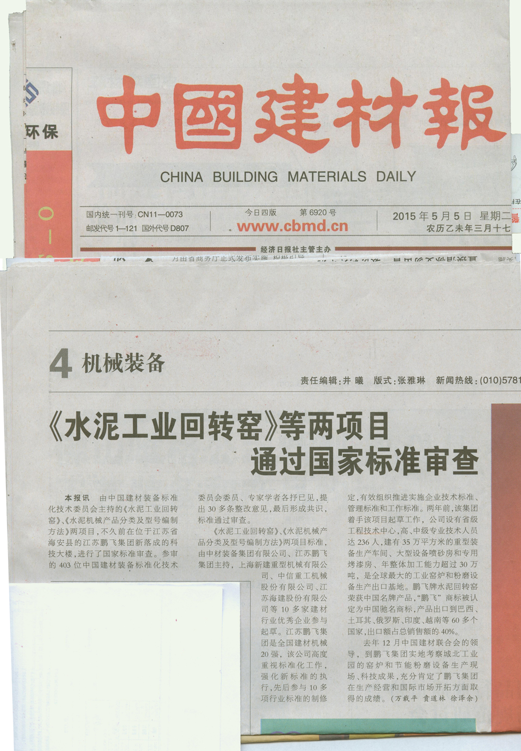 水泥工業回轉窯等兩項目通過國家標準審查