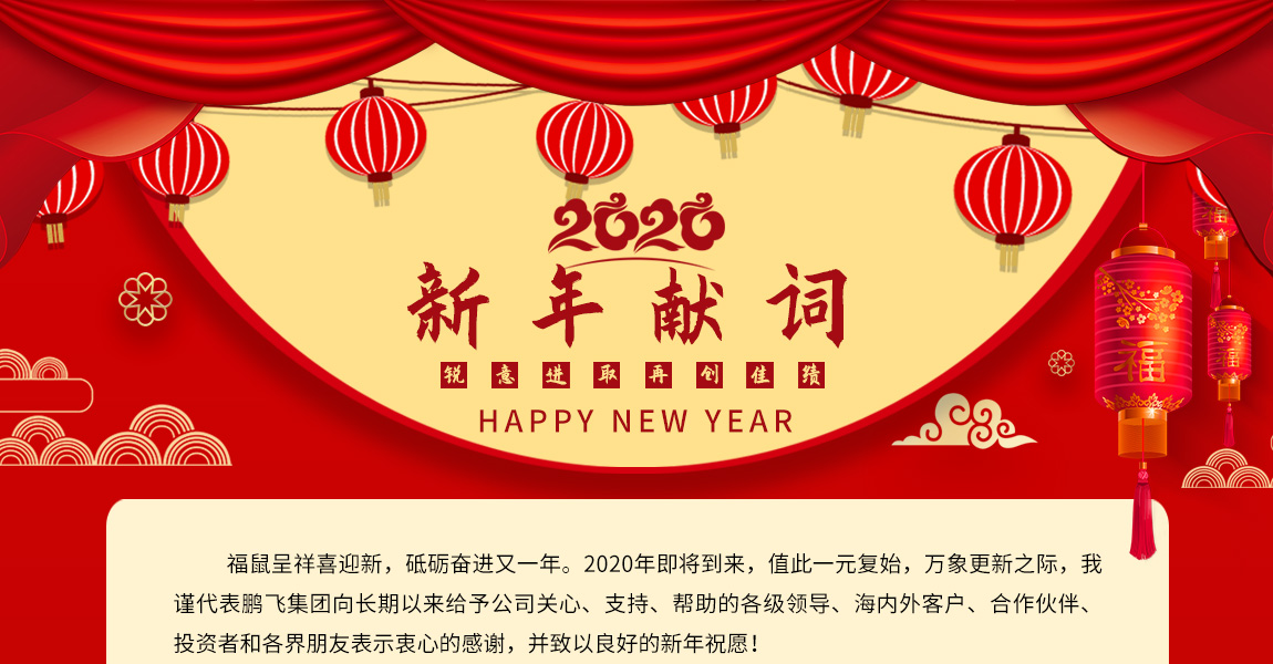 福鼠呈祥喜迎新,砥礪奮進又一年。2020年即將到來,值此一元復始,萬象更新之際,我謹代表鵬飛集團向長期以來給予公司關心、支持、幫助的各級領導、海內外客戶、合作伙伴、投資者和各界朋友表示衷心的感謝,并致以良好的新年祝愿!