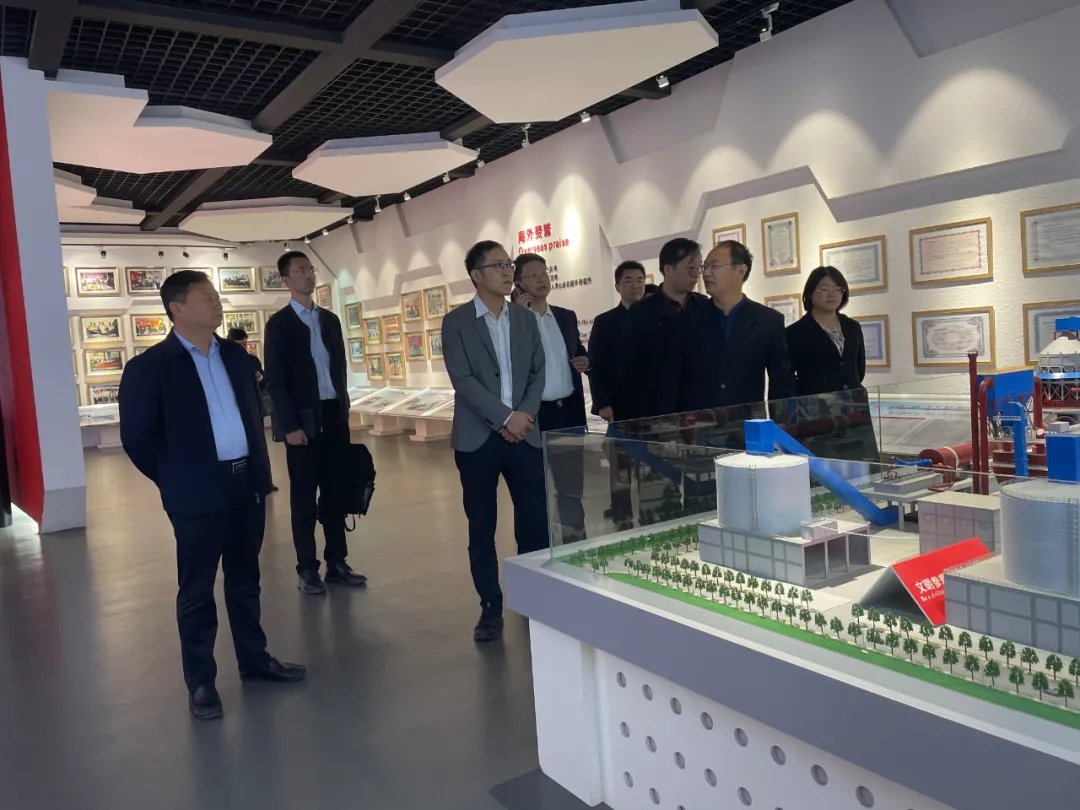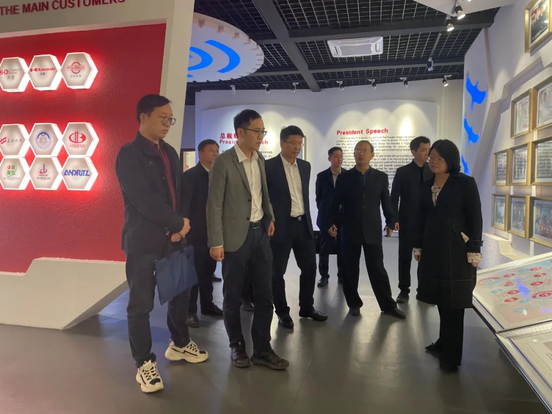 谷行楗一行先后參觀了鵬飛集團科技展覽館和生產車間,參觀途中,雙方就回轉窯、輥壓機等生產線設備的種類、特點、制造工藝等進行了學術交流。