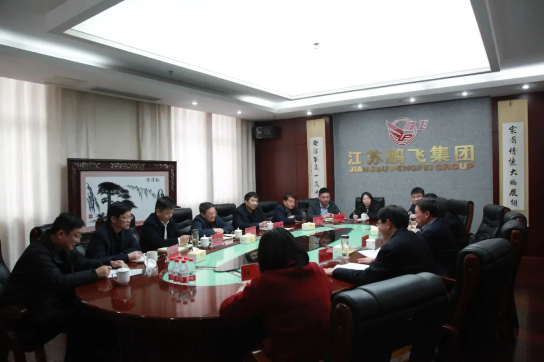 3月4日下午,市人大常委會副主任張忠宏、市人大常委會財政經濟工作委員會主任錢祥健、市人大常委會專職委員徐瀧,發改委、行政審批局和生態環境局分管負責人一行到江蘇鵬飛集團調研。大公鎮黨委書記金山存,黨委副書記、鎮長魯競,鎮人大主席何雋,副鎮長曹陽,江蘇鵬飛集團董事長王家安等參加會議。