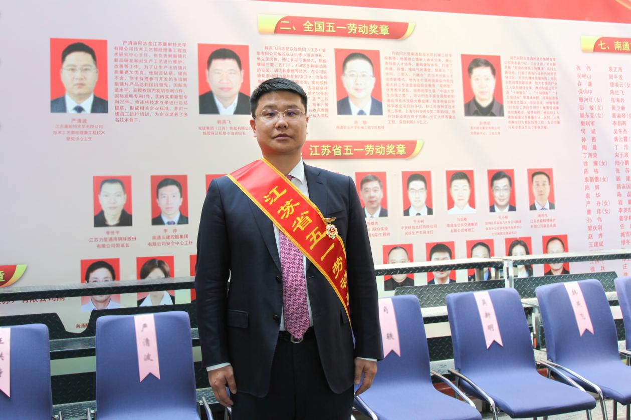 4月27日下午,南通市慶祝“五一”國際勞動節暨五一勞動獎表彰大會在市行政中心隆重舉行,大會表彰了一批為推動全市經濟社會高質量發展作出突出貢獻的先進集體和先進個人,鵬飛集團施鵬宇同志榮獲江蘇省五一勞動獎章。市委書記吳新明,政協主席黃巍東,人大副主任莊中秋等市領導會見了勞模先進代表。