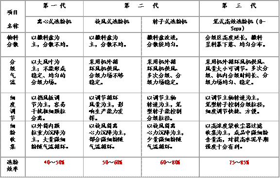 (一)三代選粉機的主要結構性能比較