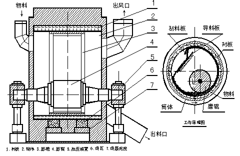 它由殼體部分、回轉部分、傳動裝置和熱風管等部分組成,內部分級循環氣流由機外熱風系統提供。 ,