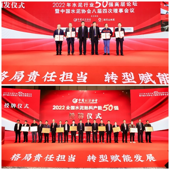 會(huì)議期間還舉辦了隆重的協(xié)會(huì)新增補(bǔ)變更副會(huì)長(zhǎng)、新增常務(wù)理事單位頒發(fā)證書儀式以及2022年全國(guó)水泥熟料產(chǎn)能50強(qiáng)授牌儀式。