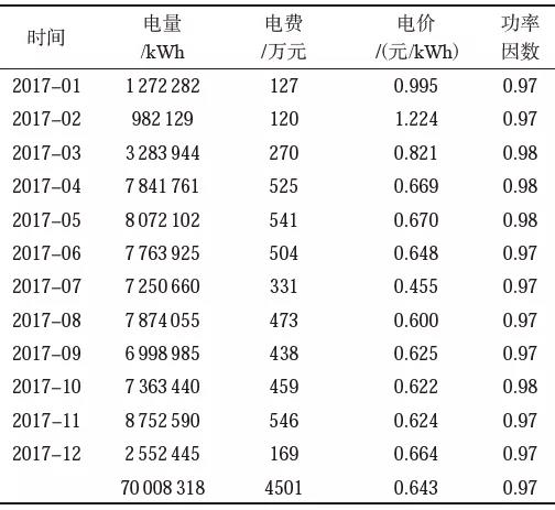 表1 2017年用電統計
