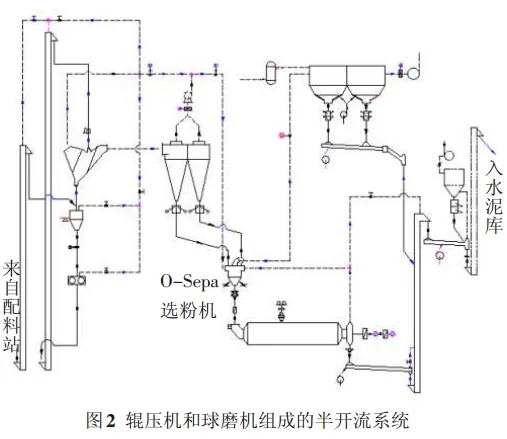 2 輥壓機(jī)和球磨機(jī)組成的半開流系統(tǒng)