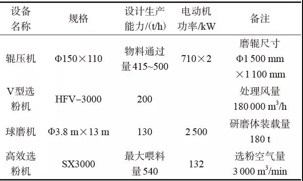 1 試驗粉磨系統(tǒng)基本情況主要設(shè)備配置及性能見表1,物料配比及細度指標見表2。