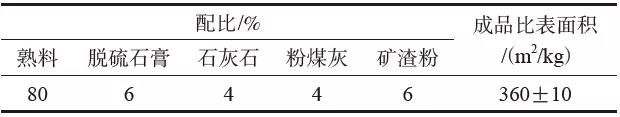 表2 P·O42.5水泥物料配比及細度指標