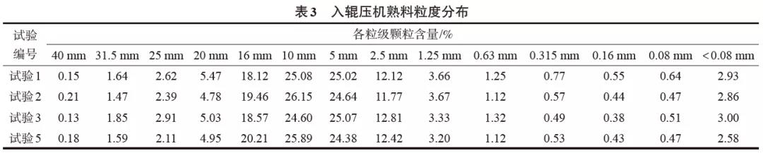 4 試驗數(shù)據(jù)的比較和說明4.1 試驗過程中輥壓機物料顆粒組成變化